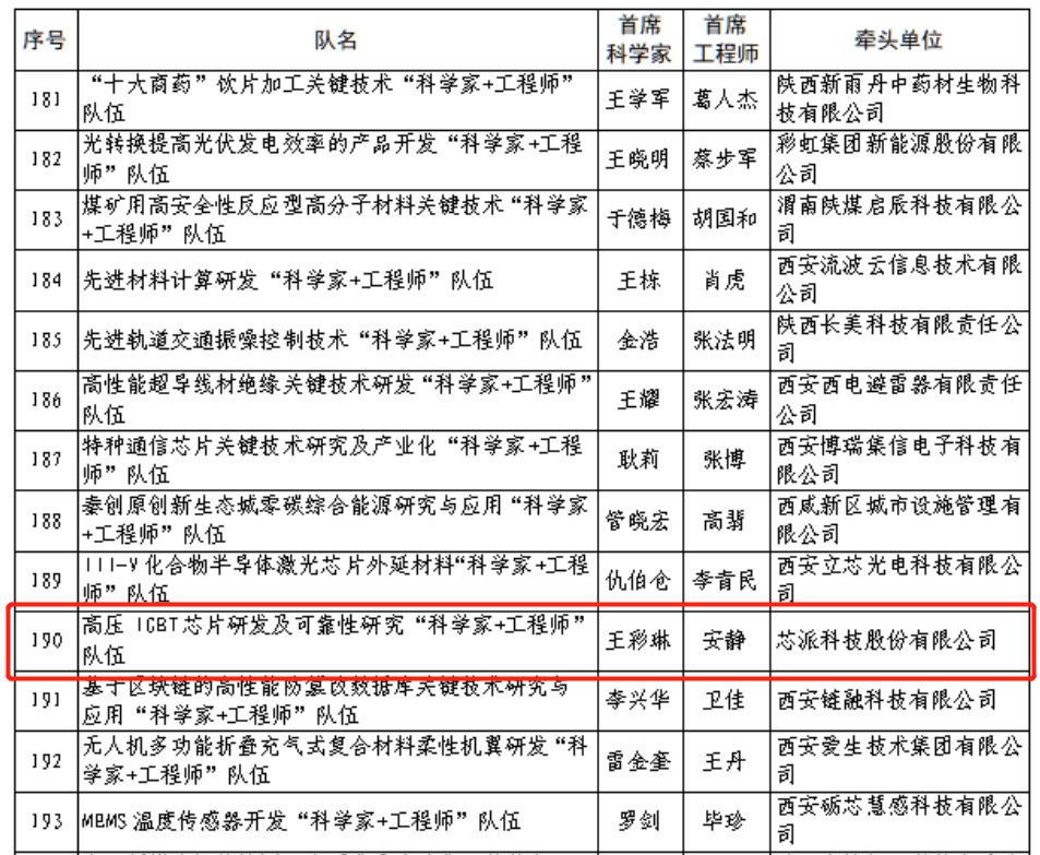 近日,經(jīng)單位申報、推薦審核、專家評審、廳務(wù)會審定,陜西省科學技術(shù)廳公布了2023年度秦創(chuàng)原“科學家+工程師”隊伍入選名單,由芯派科技和西安理工大學共同組建的“高壓 IGBT芯片研發(fā)及可靠性研究‘科學家+工程師’隊伍”入選名單。