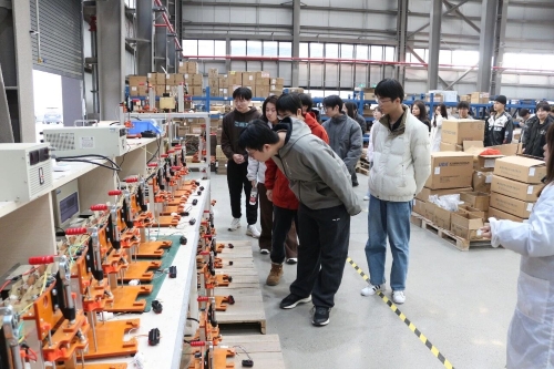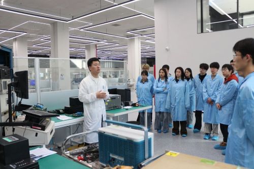 在智動綠能實(shí)驗(yàn)室,同學(xué)們圍觀著運(yùn)行中的各類實(shí)驗(yàn)設(shè)備,在工程師的講解下,逐步了解了基本參數(shù)測試、可靠性驗(yàn)證、失效分析測試等支持電力電子系統(tǒng)研發(fā)應(yīng)用的關(guān)鍵的核心技術(shù)。