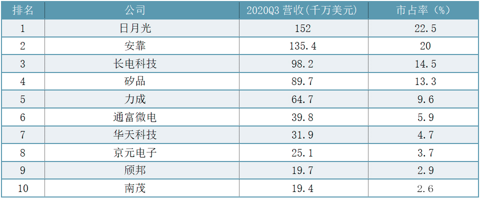 作為本土芯片封測領(lǐng)域三大龍頭,長電科技、通富微電、華天科技亦在全球占有一席之地。據(jù)拓墣產(chǎn)業(yè)研究院2020Q3數(shù)據(jù),長電科技、通富微電、華天科技分別位列全球第三、第六、第七,占比分別為14.5%、5.9%、4.7%,合計占比達(dá)到25.1%。全球芯片封測市場也基本形成了以中國大陸(長電科技+通富微電+華天科技等)、中國臺灣(日月光+矽品+力成等)和美國(安靠)為主導(dǎo)的三足鼎立的局面。