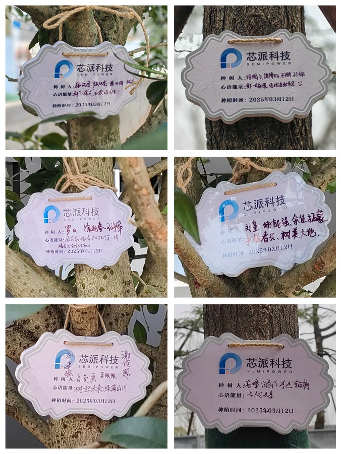 樹苗栽種成功后,大家在親手種植的樹牌上簽名,一塊塊樹牌、一句句寄語(yǔ),承載著芯派人對(duì)未來(lái)的美好期許和深深祝福。