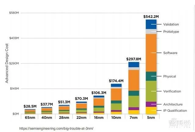 使用先進(jìn)節(jié)點的好處很多,晶體管密度更大、占用空間更少、性能更高、功率更低,但挑戰(zhàn)也越來越難以克服。極小尺寸下,芯片物理瓶頸越來越難以克服。尤其在近幾年,先進(jìn)節(jié)點走向10nm、7nm、5nm,問題就不再只是物理障礙了,節(jié)點越進(jìn)化,微縮成本越高,能擔(dān)負(fù)巨額研發(fā)費用并實現(xiàn)盈利的設(shè)計公司越來越少。