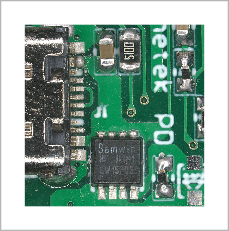協(xié)議IC采用國(guó)內(nèi)高性能模擬和混合集成電路供應(yīng)商“深圳慧能泰半導(dǎo)體科技有限公司” 的HUSB350,HUSB350通過(guò)了PD3.0 PPS認(rèn)證,支持USB3.0和USBType-C1.2標(biāo)準(zhǔn),內(nèi)部集成了恒壓補(bǔ)償環(huán)路和橫流補(bǔ)償環(huán)路,適用于1C,1C+1A,2C,2C+1A,1C+2A等多種結(jié)構(gòu),本次DEMO輸出為1C口,從協(xié)議測(cè)試結(jié)果可以看出,該DEMO支持PD3.0、APPLE 5V 2.4A、BC1.2 DCP 5V 1.5A、QC2.0 5V 9V 12V、SAMSUNG AFC 9V、HUAWEI FCP 5V 9V等協(xié)議,可對(duì)支持相關(guān)協(xié)議的所有手機(jī)及平板電腦進(jìn)行充電。